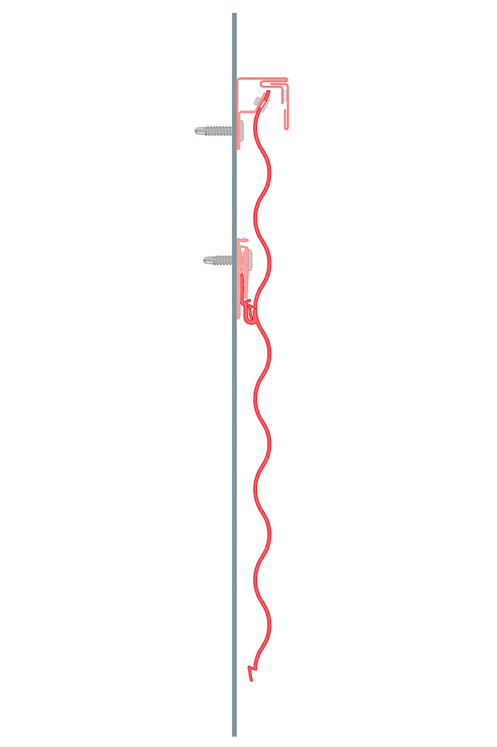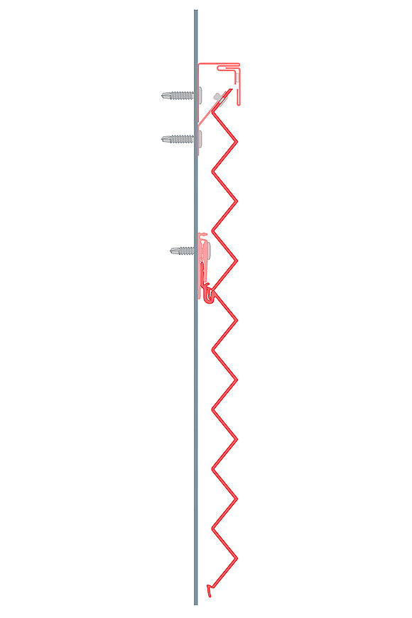 Monter returfestet først på underkonstruksjonen, og fest deretter den forkortede profilen med PREFA-patentnagler på returfestet.