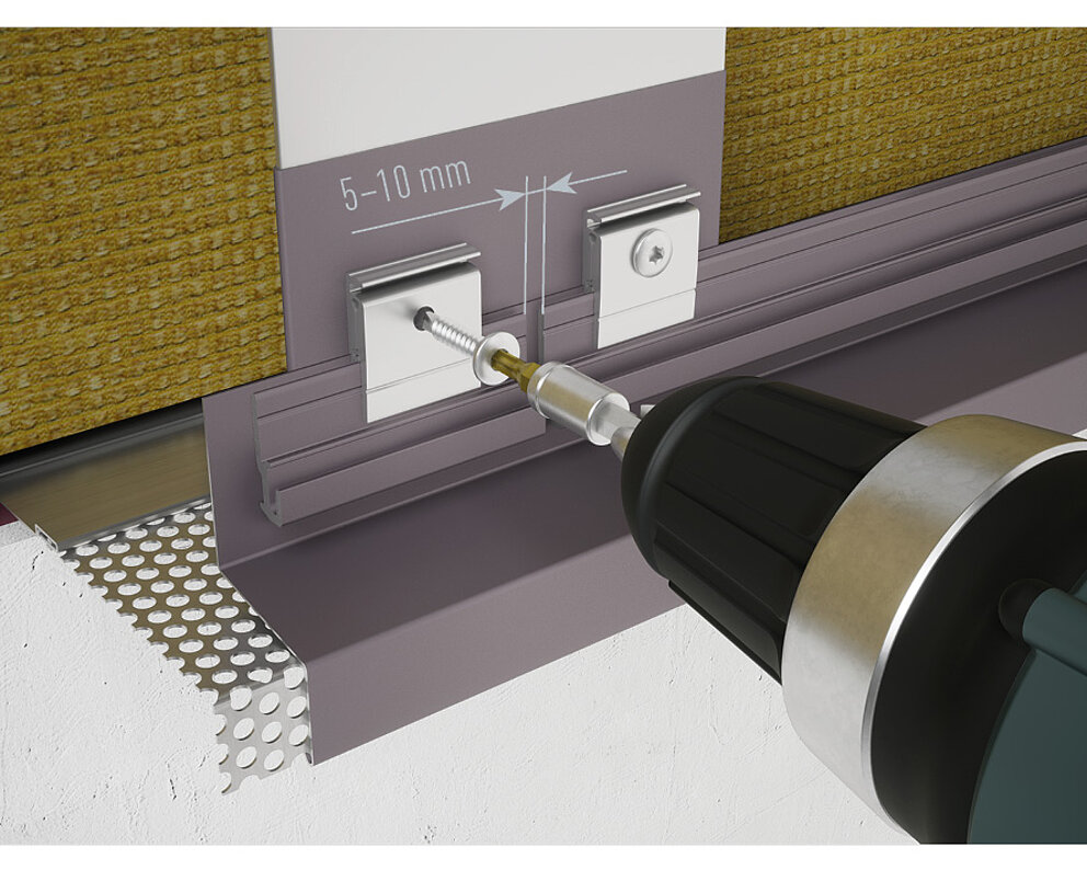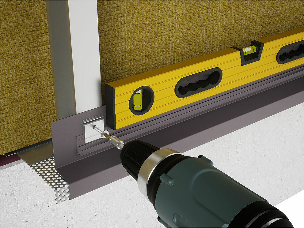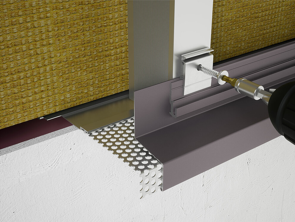 Når tilkoblingsforberedelsene for sokkelområdet til VHF (perforert plate og dekklist) er montert, kan monteringen begynne med startprofilen. Startprofilen er alltid den første profilen for oppføring av en fasade med ekstruderte profiler.