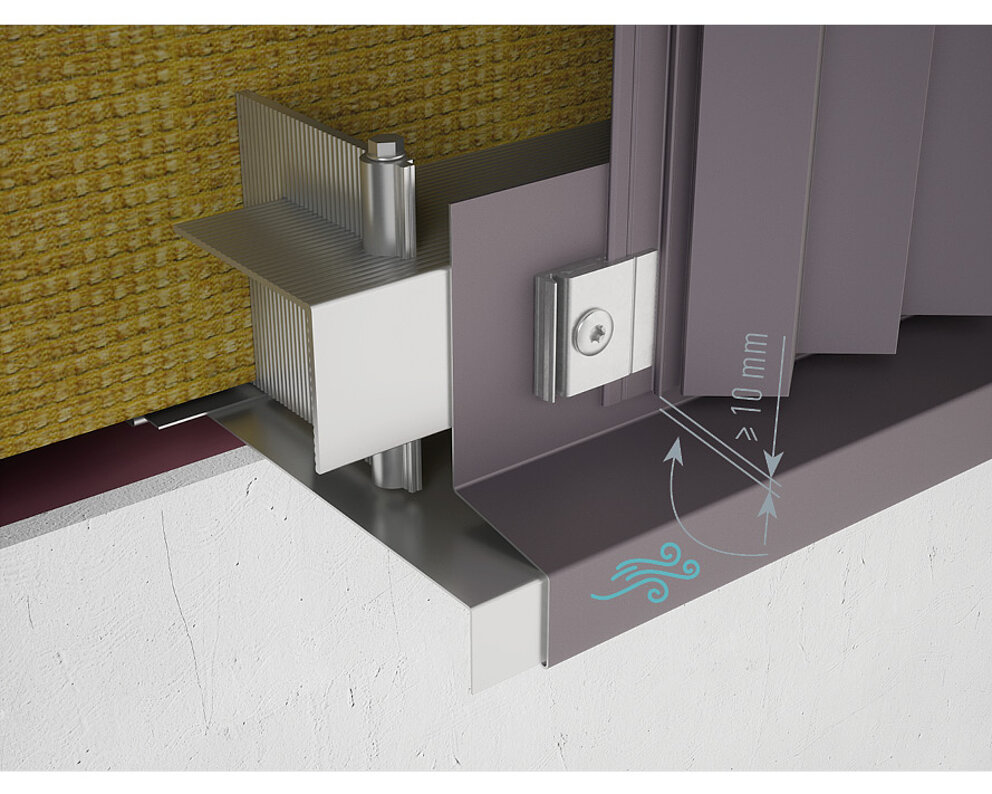 For å sikre tilstrekkelig tilluft til lufterommet ved bruk av ekstruderte profiler, må avstanden mellom profilens underkant og vannbrettet være minst 10 mm.