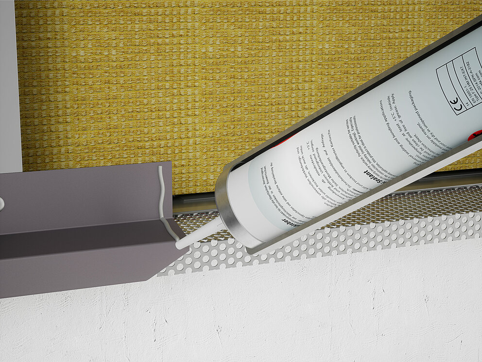 I tilfelle av lengre bygningsmål, må du ikke støte på startprofilene og skjære hullpanelet på grunn av materialutvidelsen. Oppretthold en avstand på 5–10 mm for materialutvidelsen (avhengig av lengden på startprofilen).