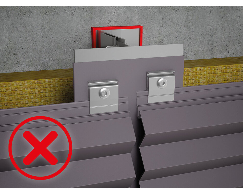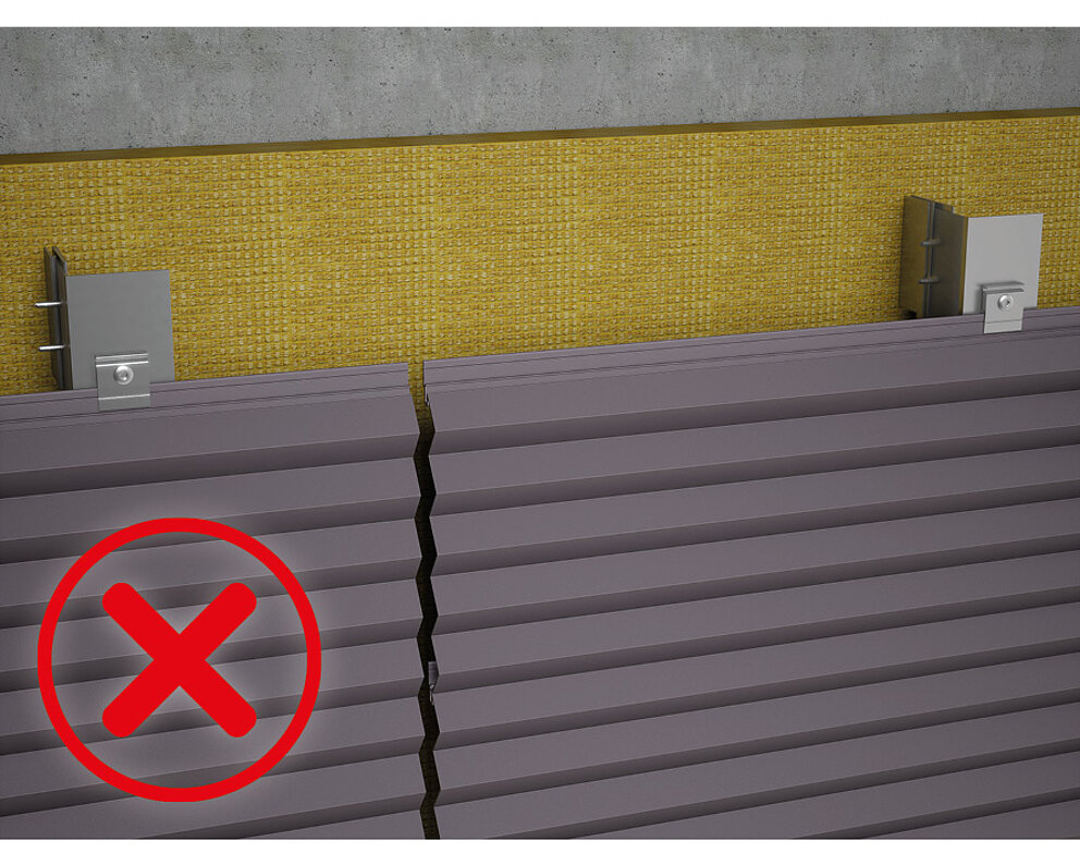 Profilskjøten i flaten anbefales ikke, siden profilenes maks. utkraging ofte overskrides og dermed åpne fuger oppstår. I tillegg er risikoen for en forskyvning i planet svært stor .