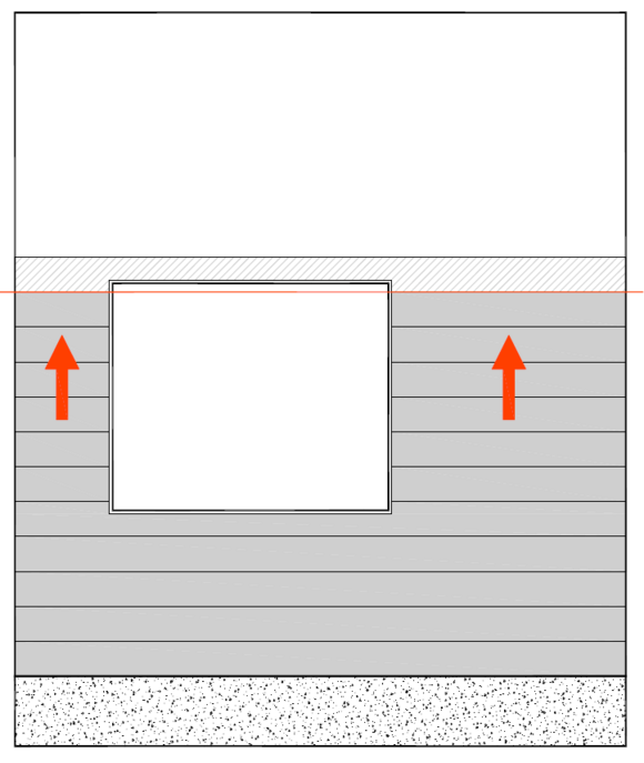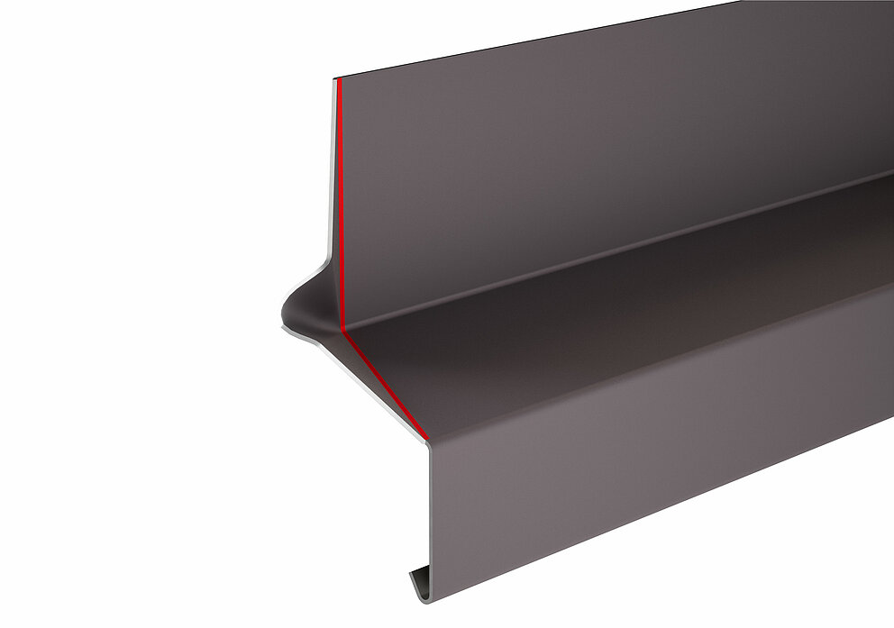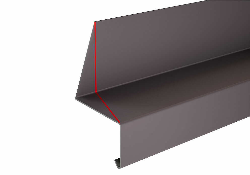 På oversiden av soffit-platen er det en 90° bøy i retning av midten av vinduet.