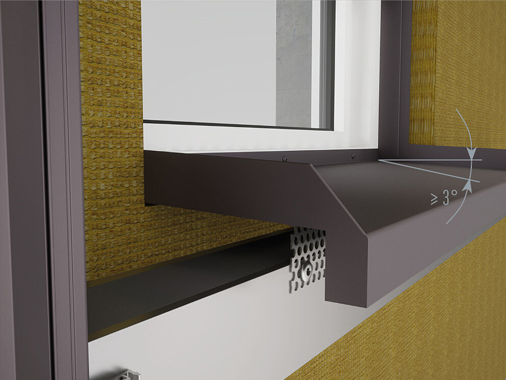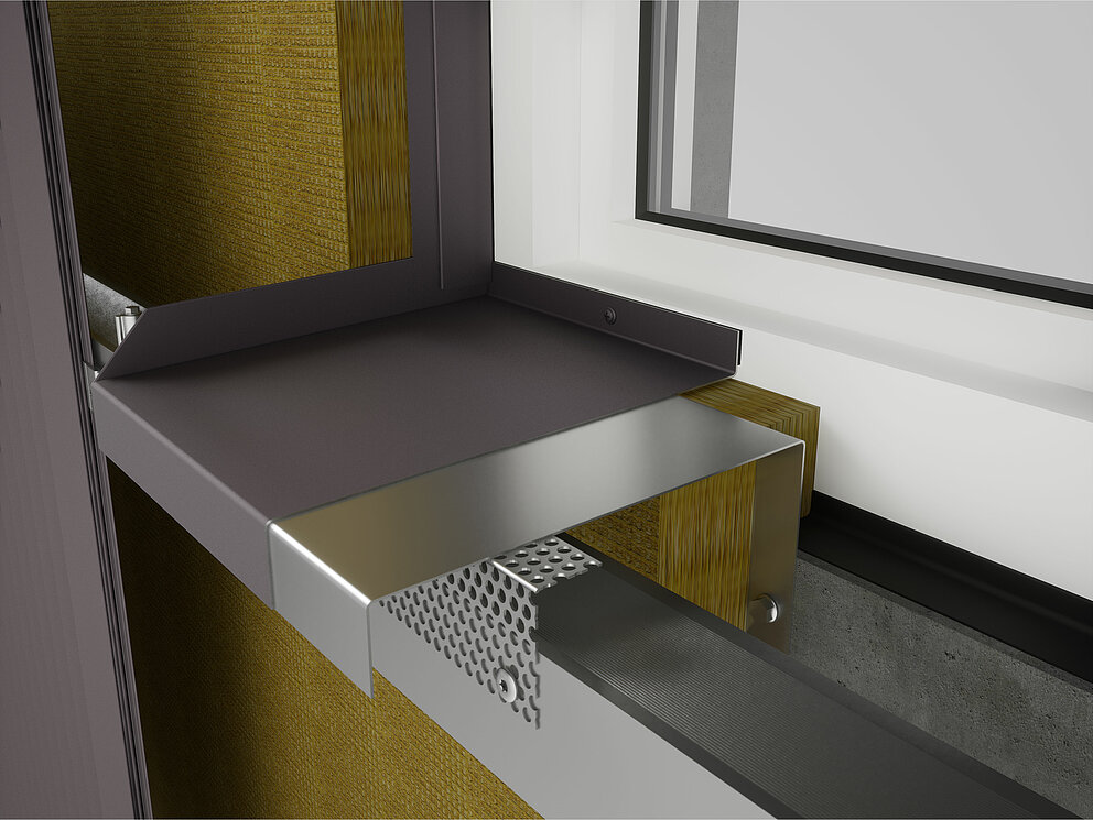 I det første trinnet av vindusrammen er den perforerte platen og holdebåndet montert. Kontroller at bakre ventilasjonsåpning forblir uhindret.