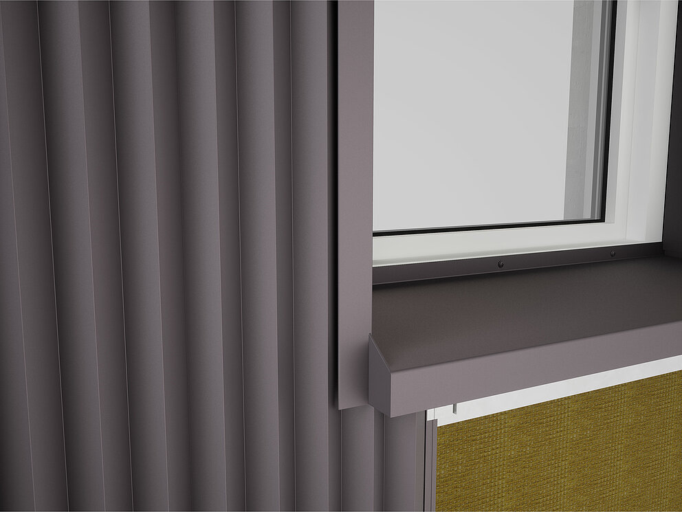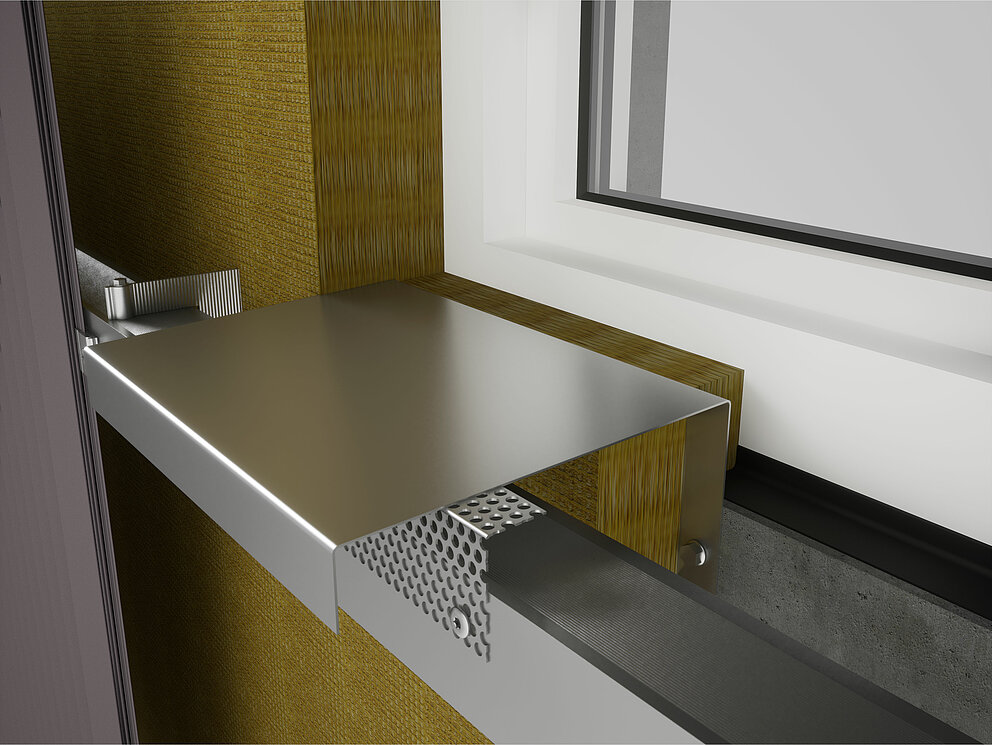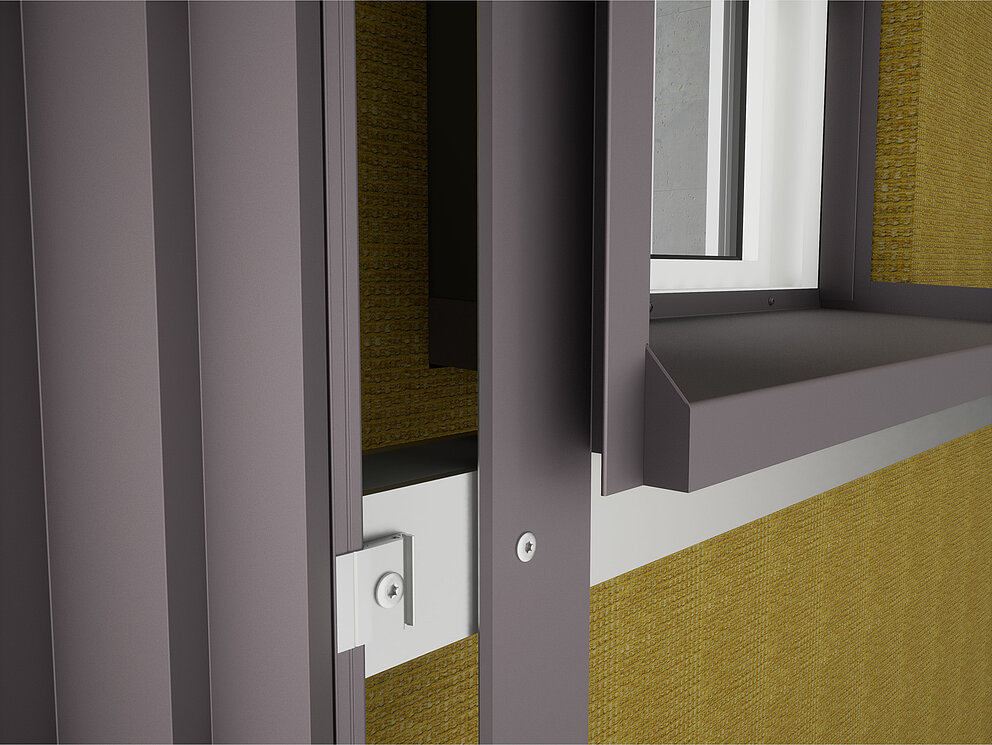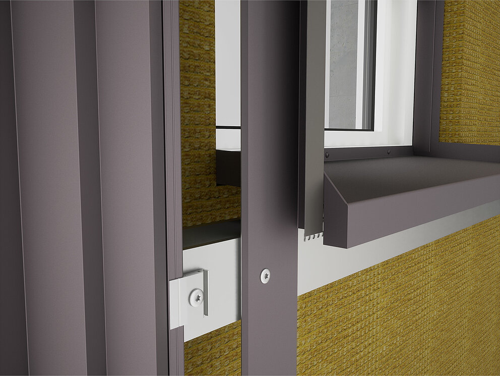Festebrakettene for soffit-platen skrues deretter på underkonstruksjonen til venstre og høyre for vinduet. Samtidig festes koblingslistene for støpeplaten og koblingsstrimmelen for vindusforlengelsen også til vindusrammen eller murverket.
