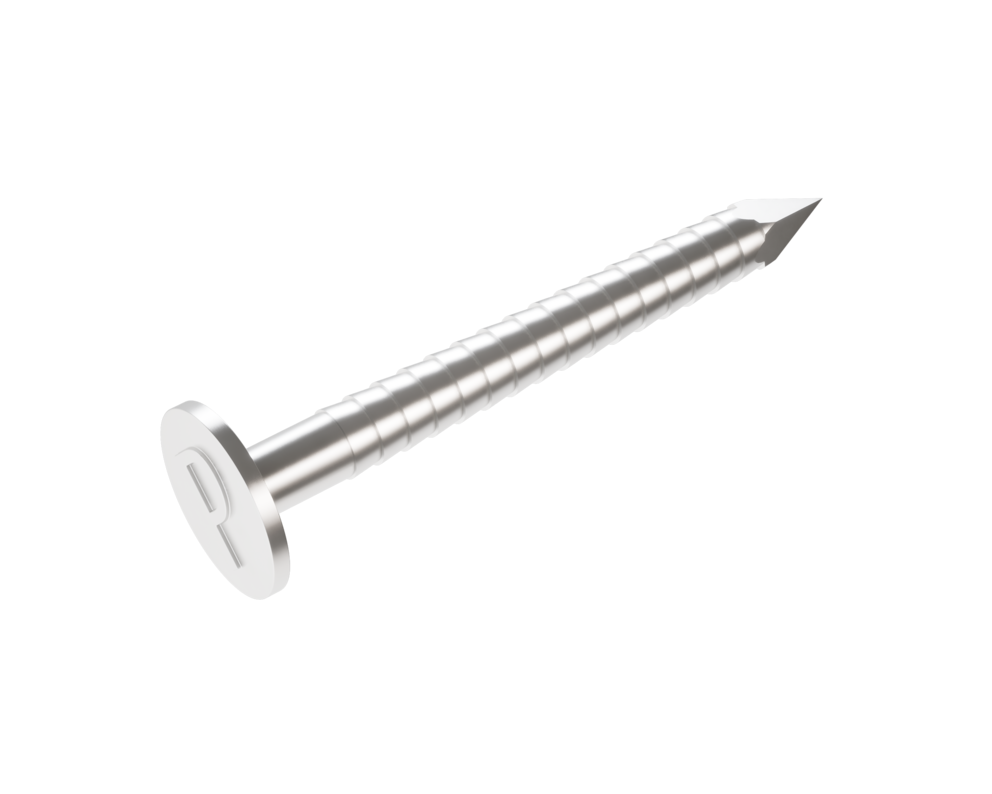 Til festing av stående falstekkinger skal det brukes klips med spiker, skruer eller nagler av rustfritt stål. Av denne grunn tilbyr PREFA rustfrie rillespiker i forskjellige lengder for feste av PREFALZ-tekkinger.