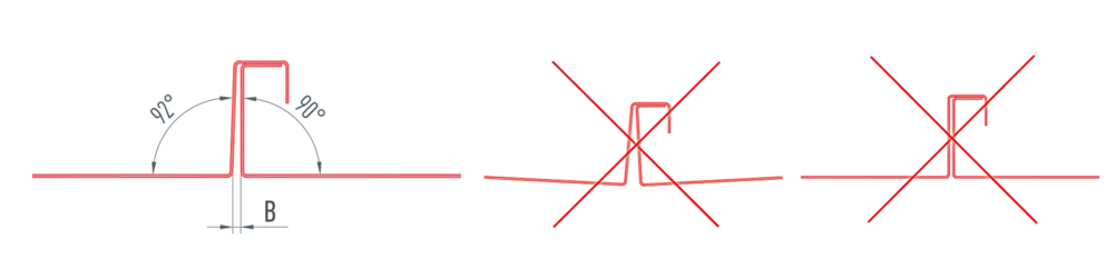 Den tverrgående utvidelsen (B) av platene skal tas i betraktning: Dette mellomrommet kan variere avhengig av profileringsmaskinen og systemet som brukes.