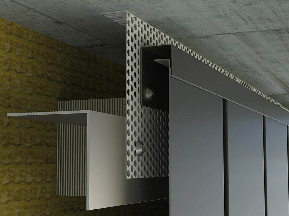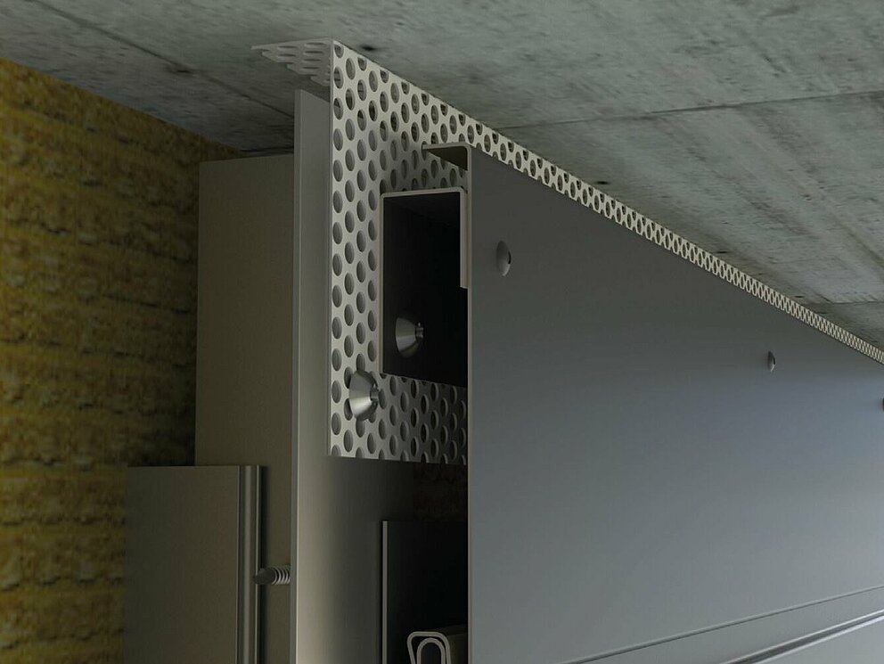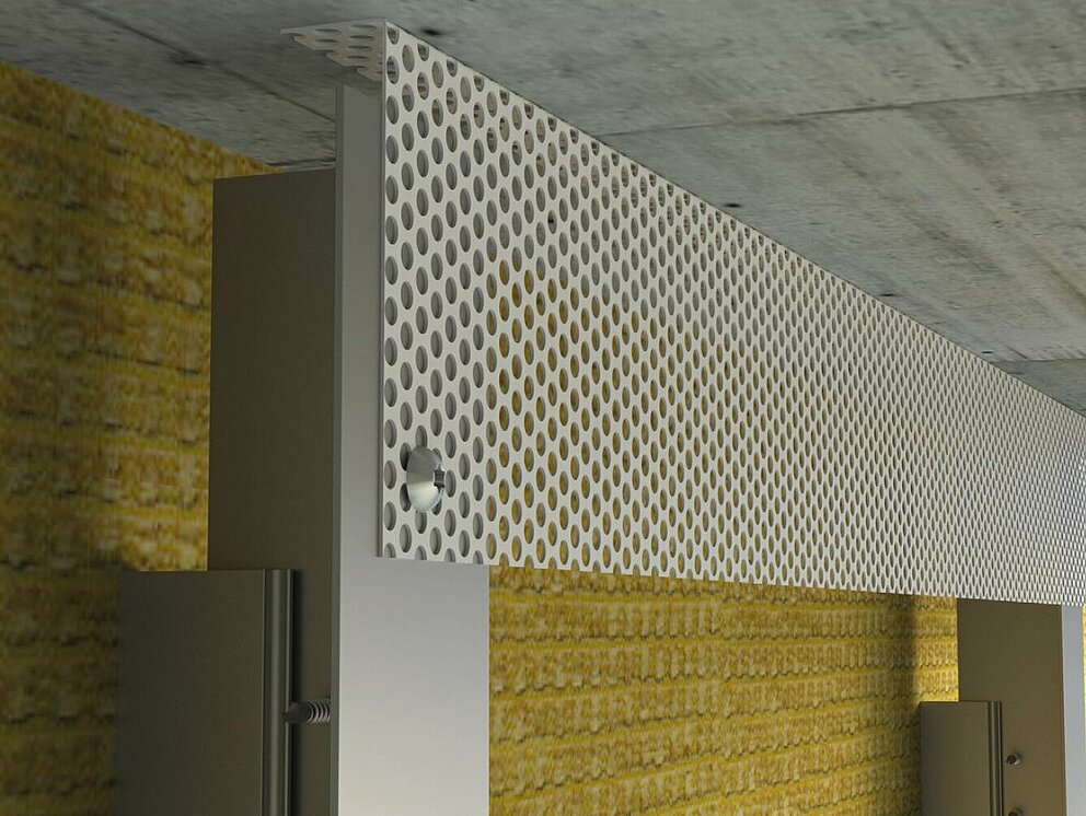 For å ventilere fasaden på riktig måte, må det være en avtrekksluftåpning i den øvre enden. Monter en perforert plate med en 90° bøy ved avtrekksluftåpningen (f.eks. takutstikker) for å oppnå en høyere stivhet.