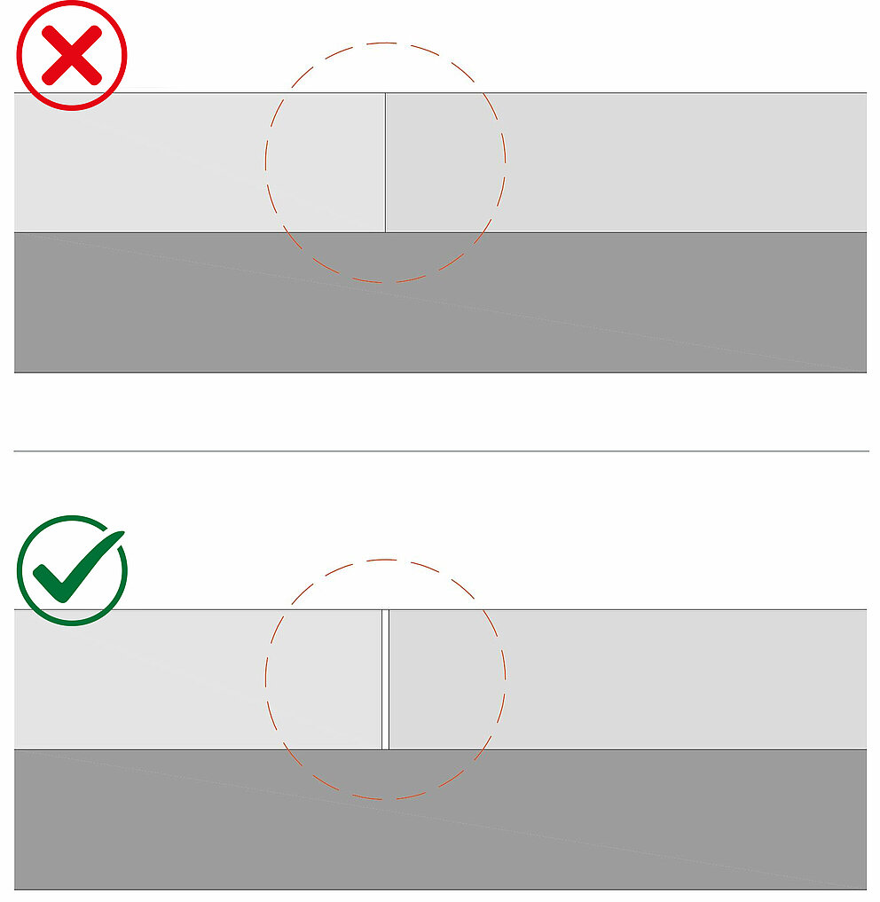 PREFA-skjøter kan ikke monteres direkte oppå hverandre: