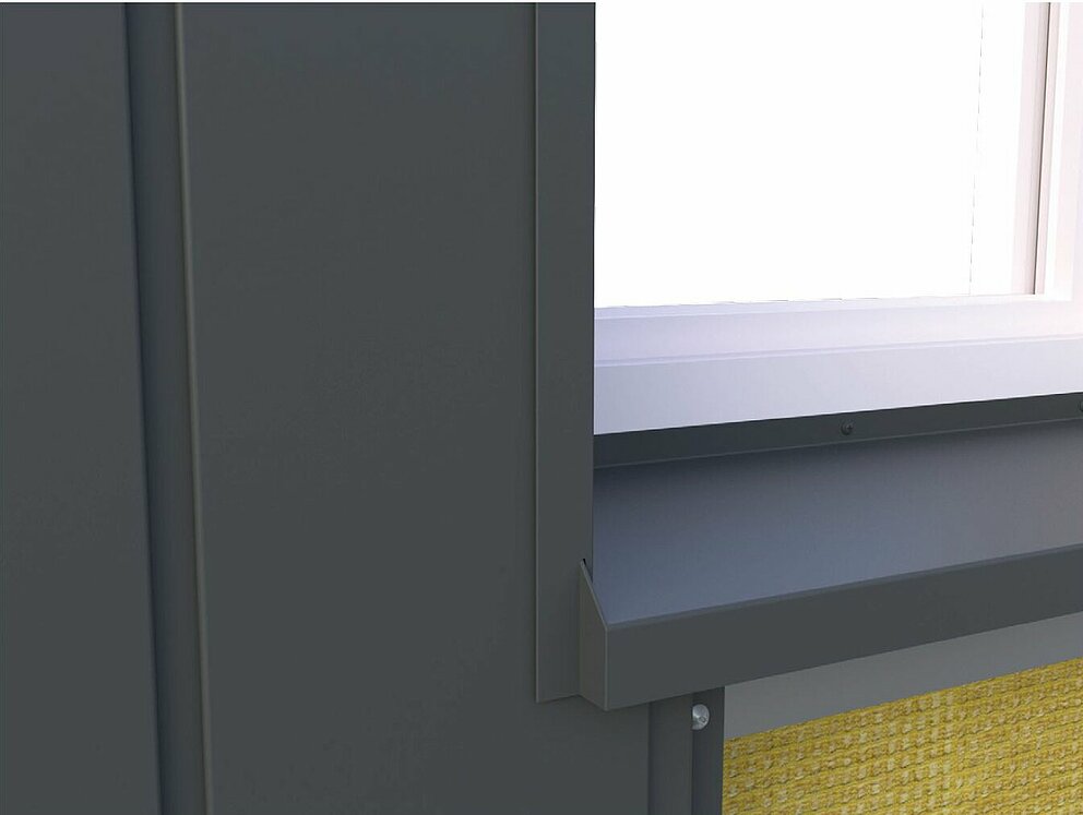 På oversiden av soffit-platen er det en 90° bøy i retning av midten av vinduet.