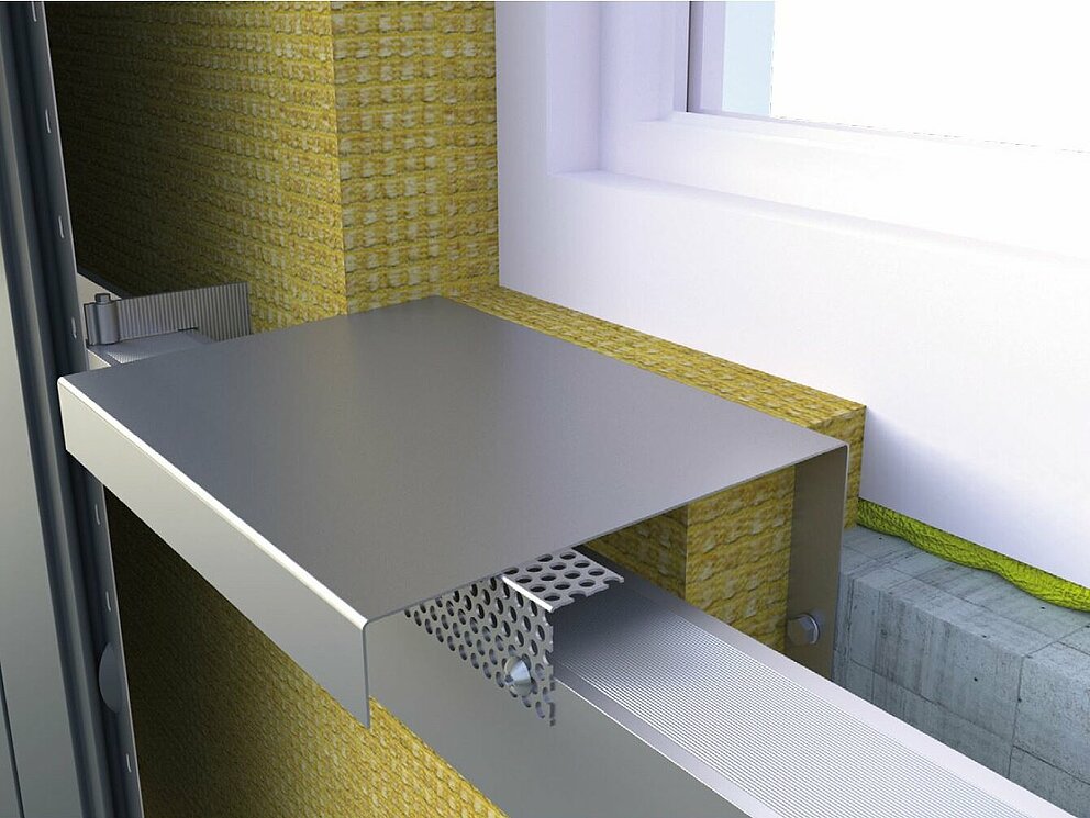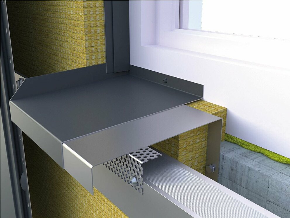 Værskinnen er montert på underkonstruksjonen sammen med det perforerte panelet. Sørg for at det er en avstand på 10 mm mellom vinduslisten og den perforerte platen for optimal tilstrømming av luft. For å få en nøyaktig parallell anbefales det å bruke en undervisning.