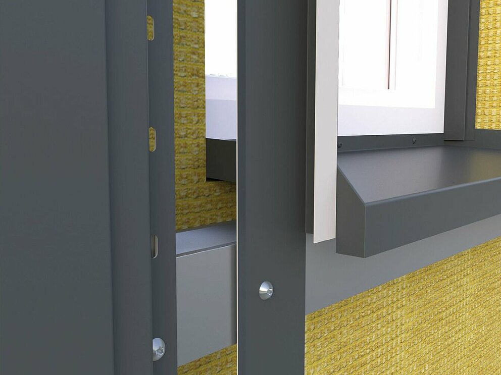 I det første trinnet av vindusrammen er den perforerte platen og holdebåndet montert. Kontroller at bakre ventilasjonsåpning forblir uhindret.