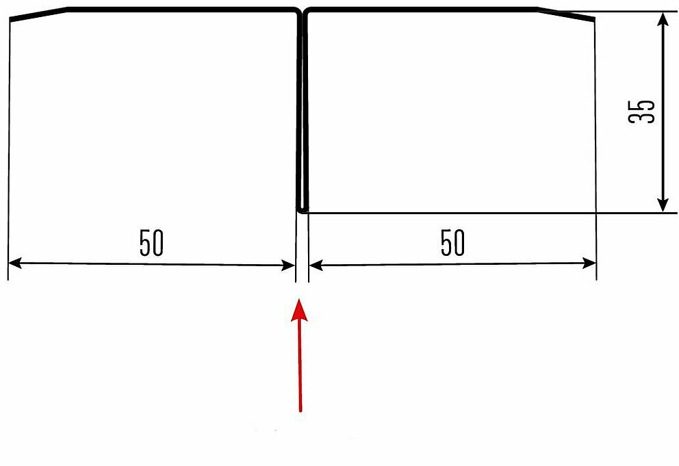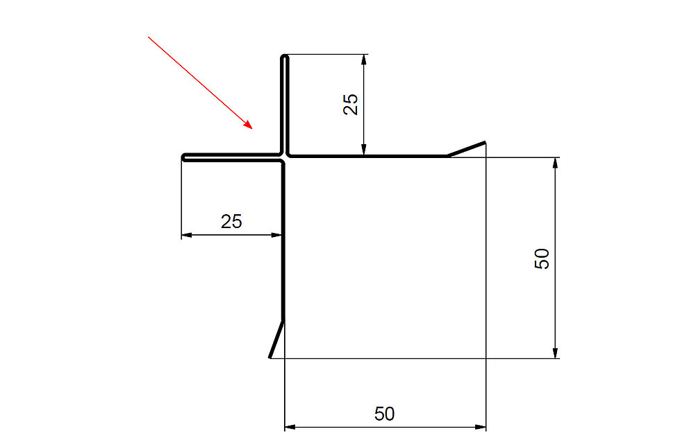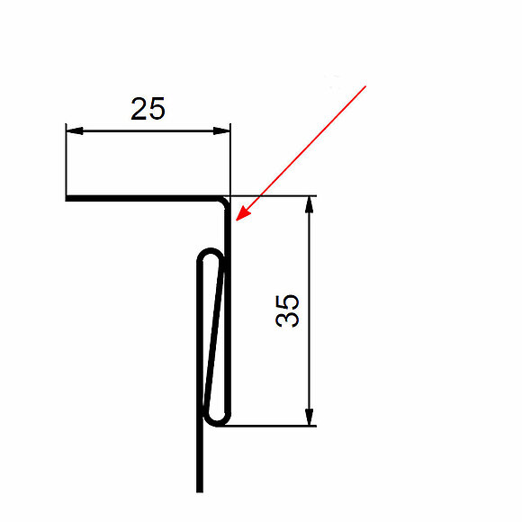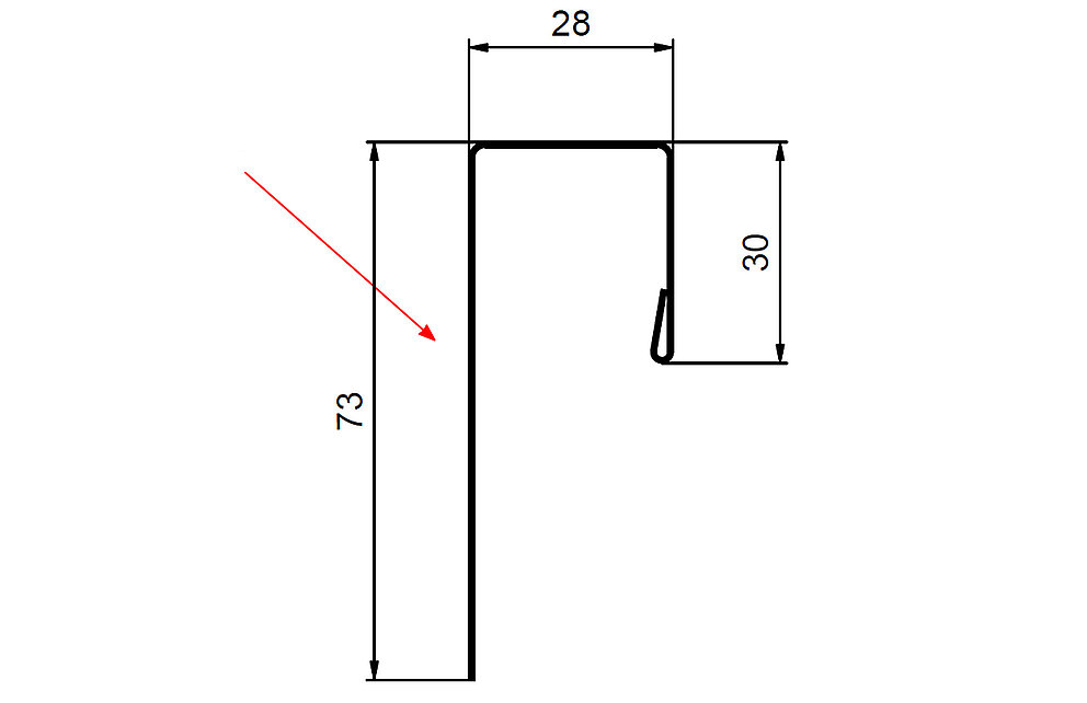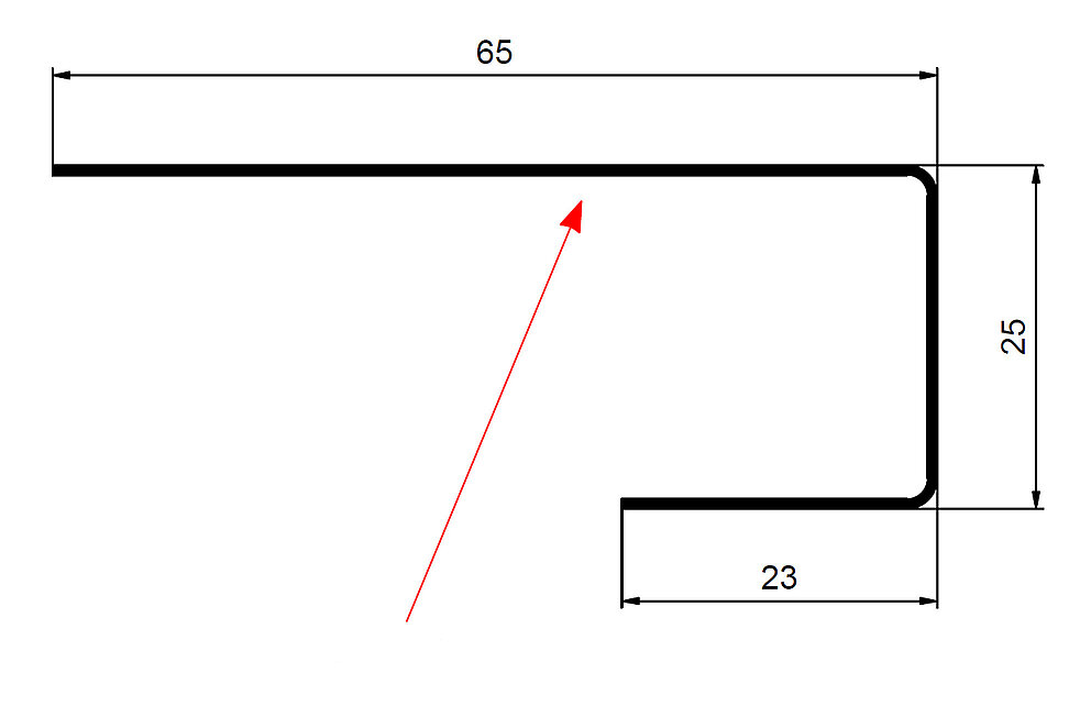 Den røde pilen markerer hver gang fargesiden på tilbehørsprofilene.