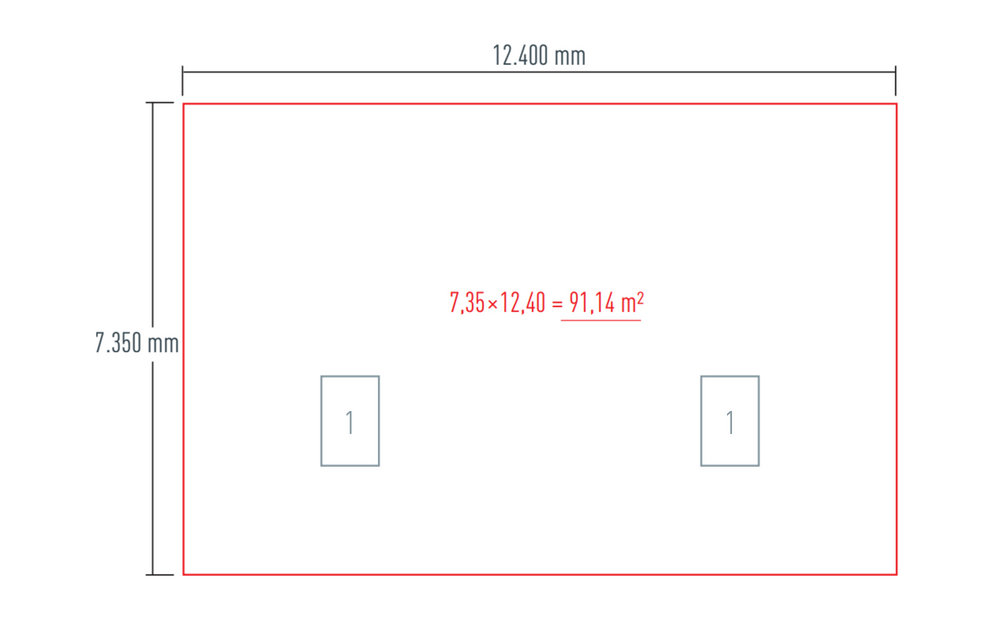 I beregningen tas det ikke hensyn til avskjæringer samt vindus- og døråpninger. I normale tilfeller (med åpninger opp til ca. 3 m²) elimineres avskjæringene og kompenseres ved avrunding av emballasjeenheter.