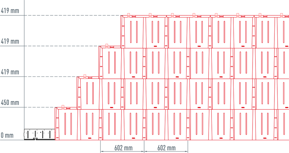 I praksis gjøres en fargelinjeavbøyning vertikalt etter 5 plater (1505 mm) eller etter 10 plater (3010 mm).