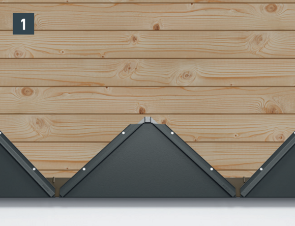 Hver veggrombe 44 × 44 festes direkte gjennom de forhåndsstansede festehullene med fire medfølgende rillespiker 2,8/25.