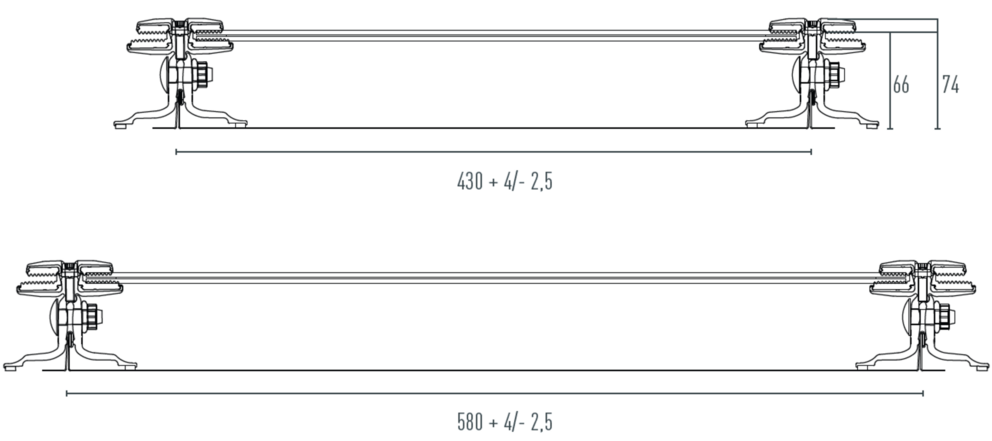 Vær oppmerksom på at paneler med dobbel bunnfals må trimmes 10 mm på grunn av det reduserte falstapet, for å oppnå en akseavstand på 430/580! Det er ikke mulig å montere på paneler med dobbel toppfals på grunn av det større falstapet på 10 mm.