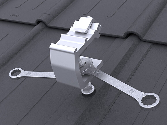 Hvis det er en overlapping eller midtrille av takplatene nøyaktig over bjelken (i monteringsområdet til hengselskruen), kan Sunny spesial brukes i stedet for å montere en underlagsplate.