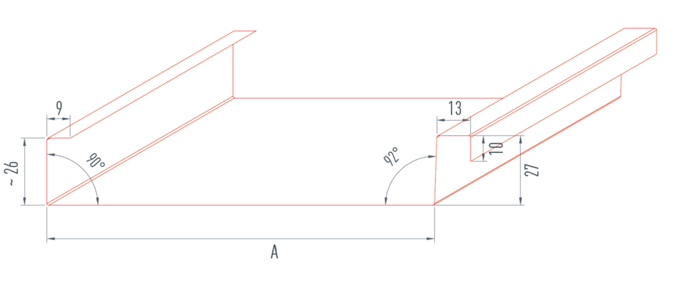 Vinkler og dimensjoner på profilen som skal overholdes, er vist i illustrasjonen nedenfor og må absolutt overholdes. Endringer i profildimensjonene kan føre til oppbøying av platene og til feilaktig legging!