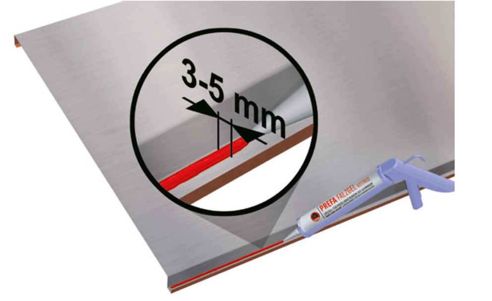 Vær oppmerksom på bearbeidingstemperaturen for PREFA falsgel: 0 °C til ca. +70 °C.