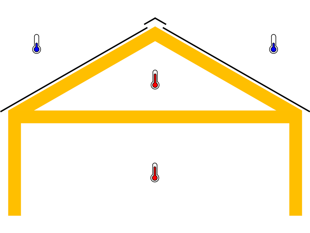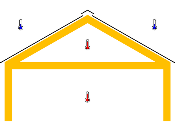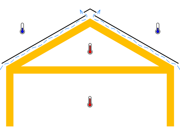 I et ventilert (uoppvarmet) loftsrom er varmeisolasjonen plassert i området ved øverste etasjeskille. Det overliggende loftsrommet forblir uisolert og fullt ut gjennomluftet. Gjennom åpninger i raft- og møneområdet kan uteluft strømme inn og slippe ut igjen ved mønet.
