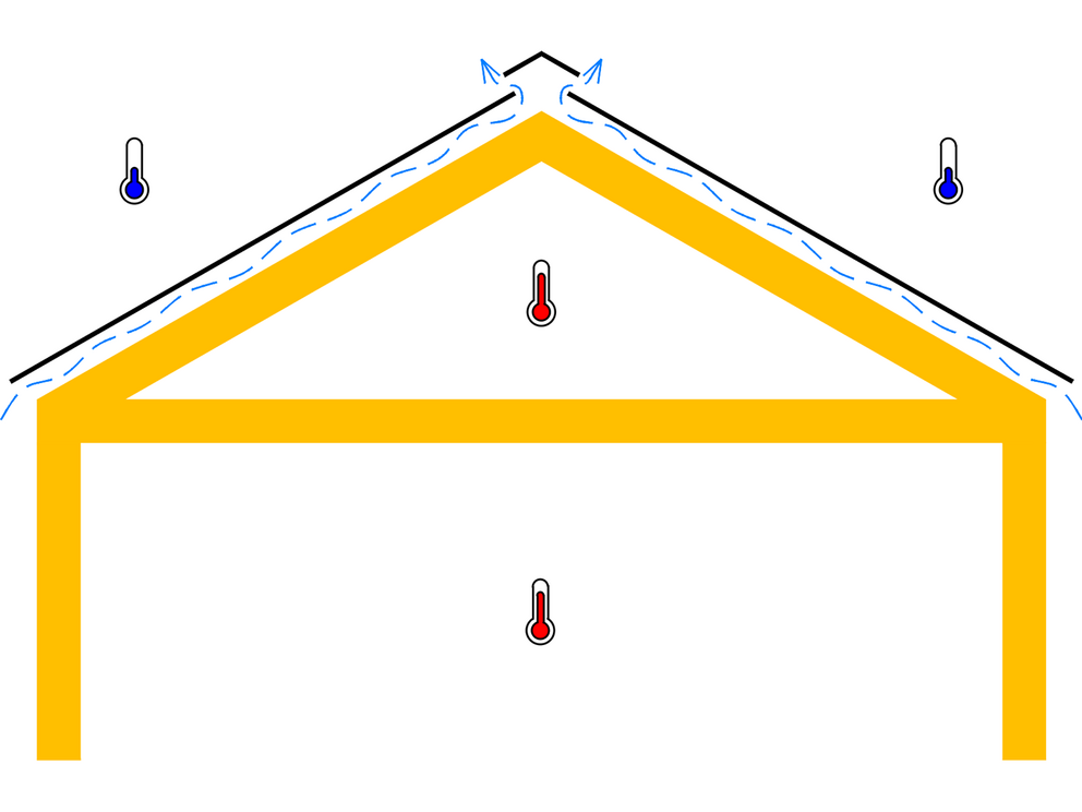 Ventilert takkonstruksjon har et luftlag mellom varmeisolasjonen og taktekningen. Ventilasjonsnivået sørger for å transportere bort varme og fukt som via diffusjon kommer fra innemiljøet inn i takkonstruksjonen. Dette påvirker inneklimaet positivt og reduserer risikoen for kondens og byggskader.