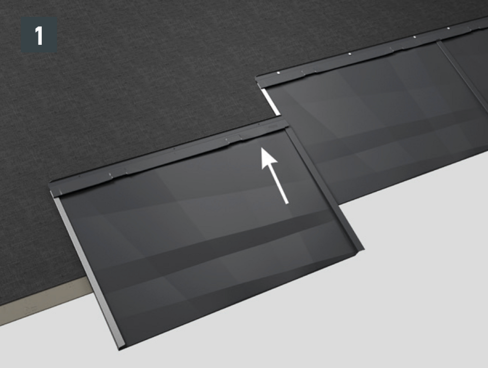 • Takpanel FX.12 legges fra høyre til venstre og bør legges i rader (i horisontale rader).