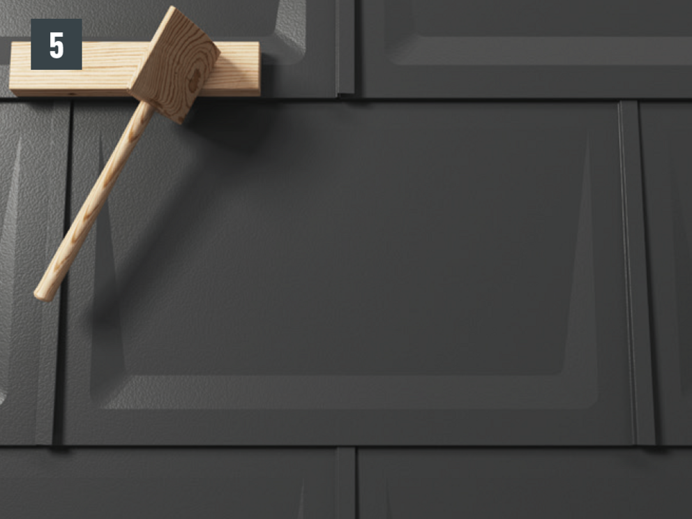 OBS: Velg plasseringen av de nye kamspikrene slik at de ikke slåes inn i det eksisterende spikerhullet!