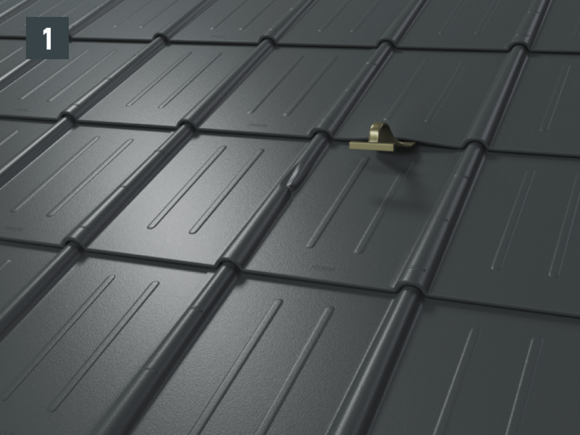 • Løft den øvre tverrgående falsen på den skadede takplaten med bollejernet (fig. 1).