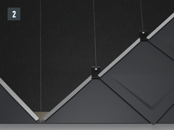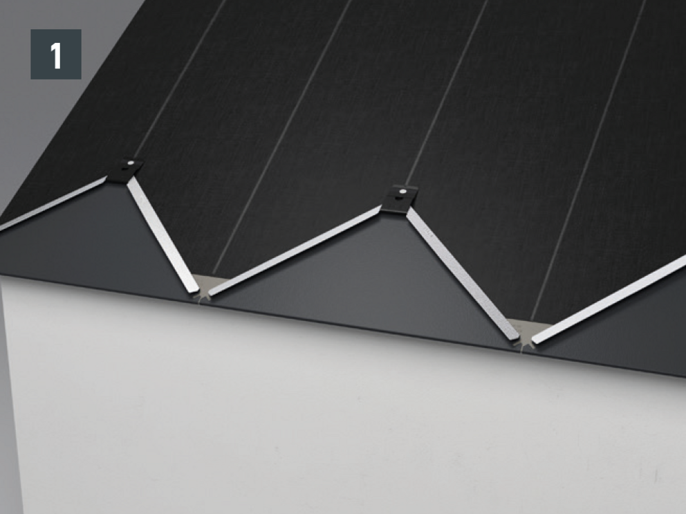 • Fest 29 × 29-takromben til det utstansede hakket ved hjelp av en klips med en 2,8/25 rillespiker som følger med (standardfeste) (fig.3). Sett ikke noe feste på falsene som går på skrå nedover (risiko for kapillæreffekt).