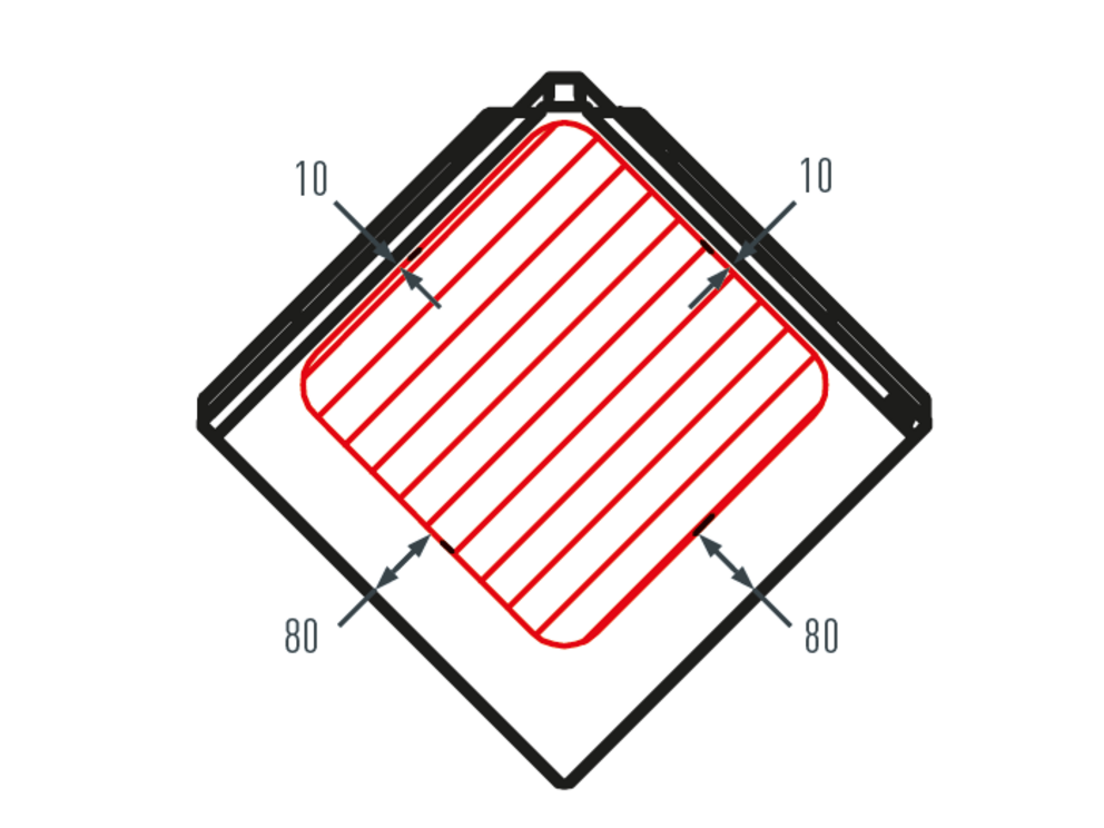 Når du installerer taktilbehørsprodukter, må du være oppmerksom på det tillatte monteringsområdet for takrombe 44 x 44. Følgende figur viser monteringsområdet for tilbehørsprodukter på bunndelene. Ulike monteringsområder kan defineres for andre tilbehørsprodukter.