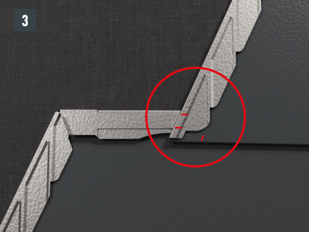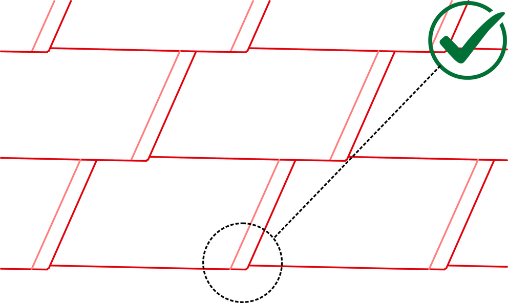 Man må unngå å trekke over den første takshingel DS.19. Pass også på at det øvre shingelomslaget går rett gjennom hele lengden når du kobler til vinkelrennen.