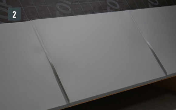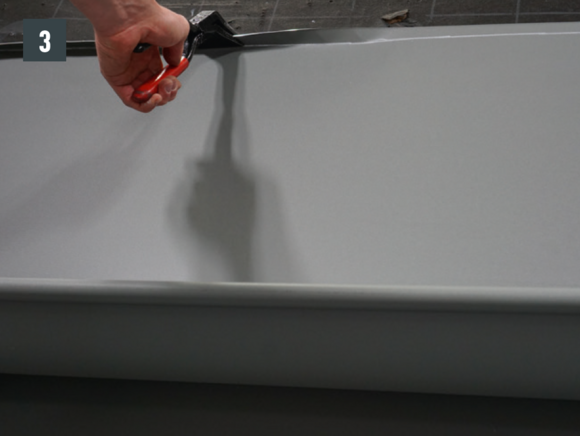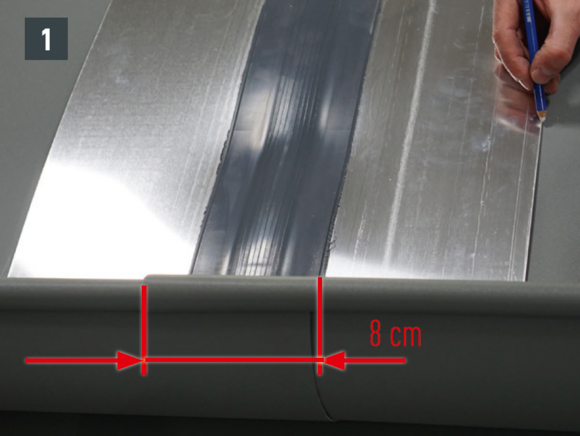 Bøy falsene slik at kantkanalen hviler minst 15 cm på kantplaten. Pass på hellingen.