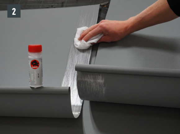 Forbindelsen kan lages som en lim- eller nagleforbindelse. Naglede forbindelser må også forsegles med PREFA spesialsilikon.